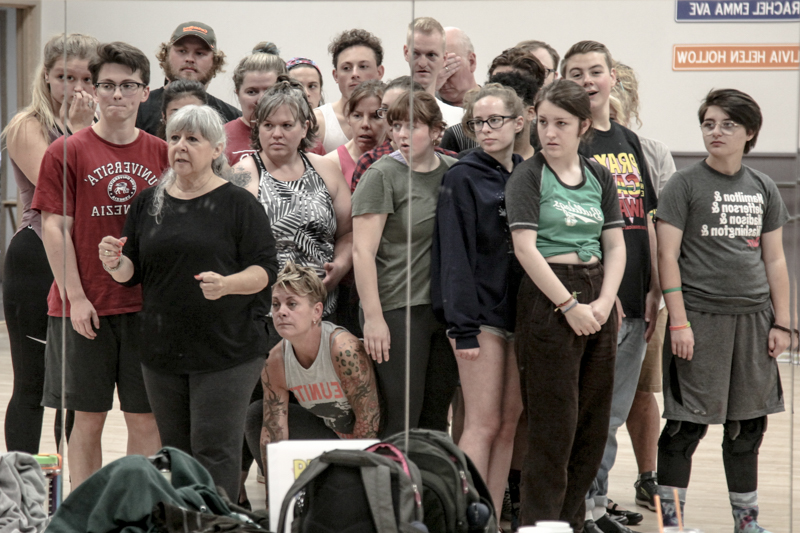 The cast of Pray the Gay Away® are hard at work rehearsing for the next show opening Nov. 8, 2019 at the Historic Lincoln Theatre in Mount Vernon, WA. This show is full of off-Broadway style full company dance numbers and traditional musical theater choreography. And yes Dorothy, there will be full tap dance segments.